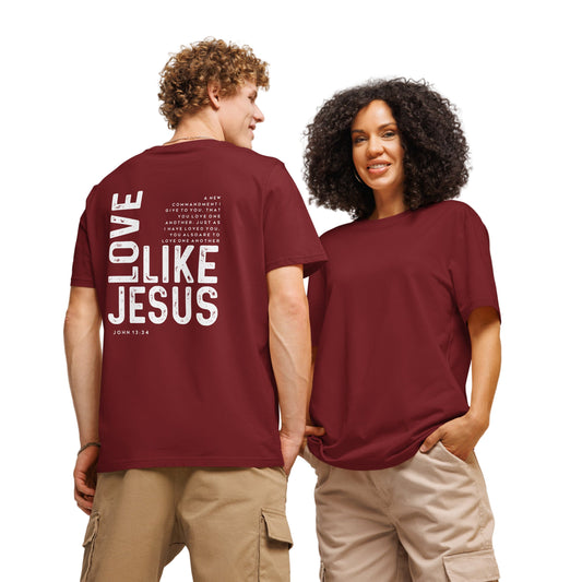 Christian Adult Unisex organic ribbed neck t-shirt, love like Jesus